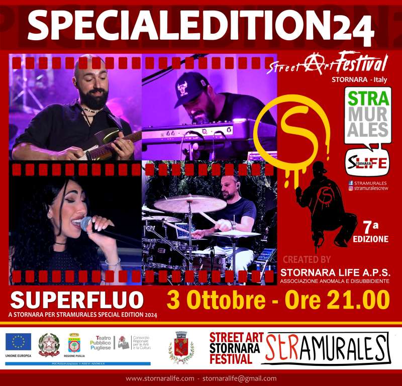 SUPERFLUO a Stornara il 3 Ottobre in P.zza della Repubblica per #stramuralespecialedition24