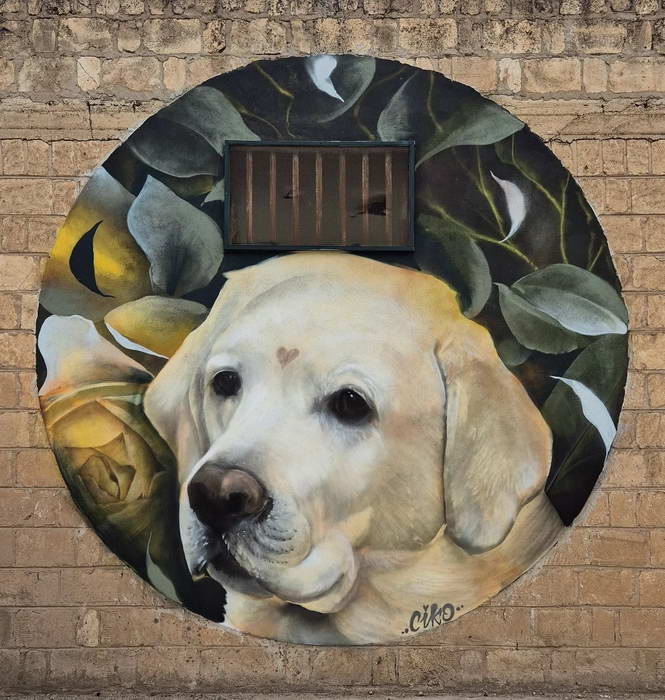 Curtis Hylton, artista inglese, in questo suo piccolo intervento ha omaggiato Cico, il Labrador di una associata a Stornara Life.